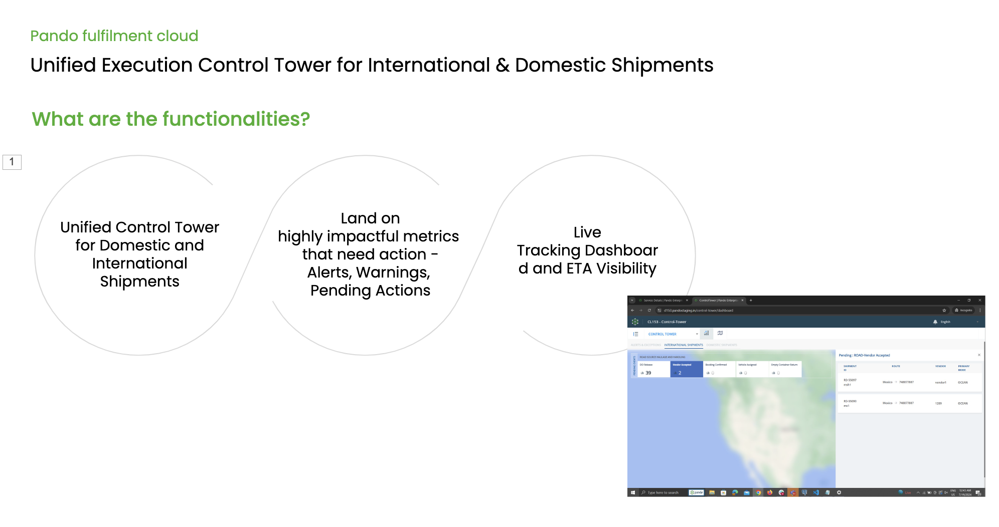 Pando’s Execution Control Tower provides a one-stop visibility solution for shippers to effectively manage actions, alerts (warnings and breaches), and exceptions for all ongoing domestic and international shipments.
